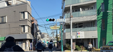 吉野家とマクドナルドを見て右へ進み、オズ通り商店街を直進。元住吉交差点を渡ります。