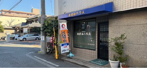 右手にお好み焼き屋が見えたら、その横のお地蔵さんを右折する。